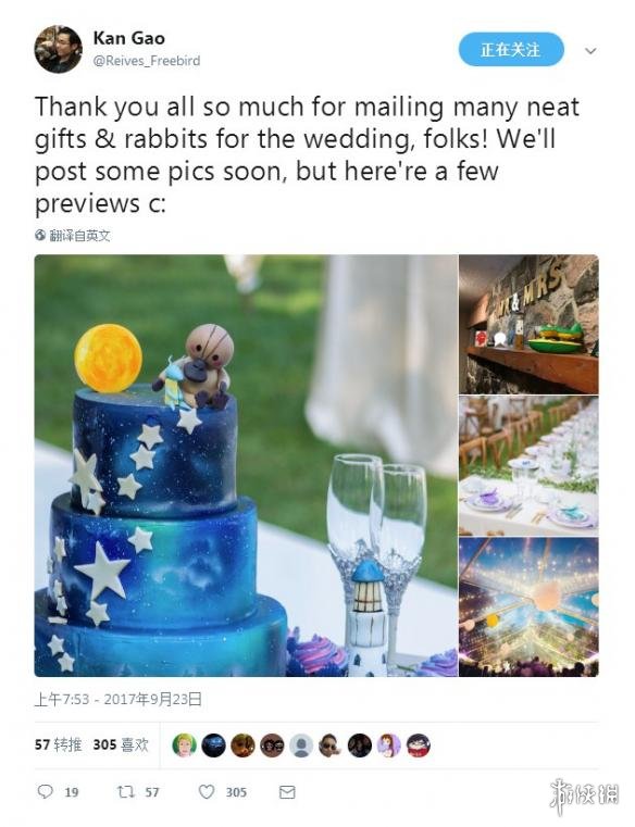 今日凌晨,《去月球》的制作人高瞰(Kan Gao)在Twitter上公布了自己的婚礼照片,这场婚礼以《去月球》为主题,既温馨浪漫又充满深意。