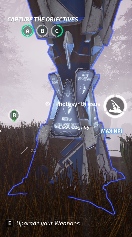 射击任意地图部件可以标记其气场并获取能量,占点时也会随着时间推移获得少量能量