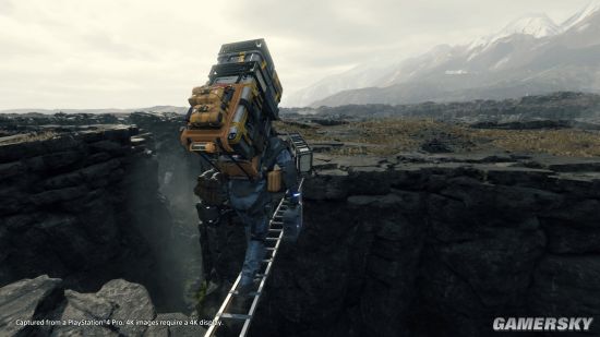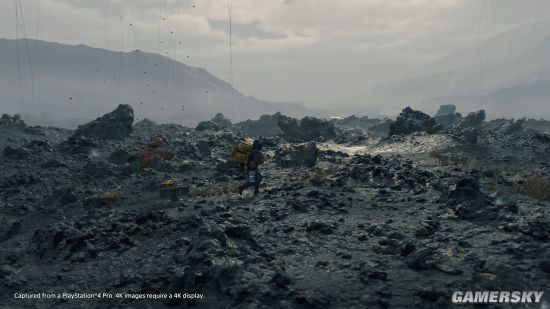 虽然小岛秀夫的动作冒险游戏《死亡搁浅》令人扑朔迷离,但是仍然令人激动不已,目前小岛秀夫已经展示了四个预告片,均为实机演示,本届E3还发布了实际操控的演示(虽然没有UI画面),浅析该视频之前,你只需知道游戏世界里的雨水名为“时间瀑布”,可以腐化生命,而婴儿则是唯一可以看见那些黑影怪物的关键之物,详细内容可查阅TGA小岛秀夫亲自公布的详细细节。另外,那位打着雨伞的女性主角的确是来自某个快递公司的人员,那个快递公司名为“易碎快递(Fragile Express)”,弩哥扮演的主角Sam Porters Bridges同样自称是派送员(Deliver),女主角甚至邀请弩哥来他们的公司服务。除此之外,索尼官方还公布了最新游戏截图,均为PS4 Pro主机直接运行游戏所捕捉的画面。