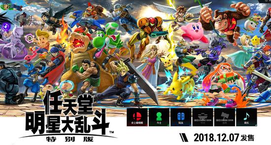 在任天堂直面会上,重点介绍了Switch版《任天堂明星大乱斗》,本作将于2018年12月7日发售。将会收录历代大乱斗游戏中的所有角色,当然还有一些新角色的加入,比如《喷射战士》中的乌贼娘,《银河战士》的Ridley。