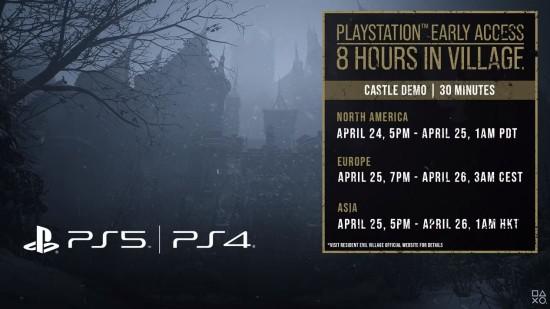 PS4/PS5 平台的玩家可以提前在 4 月 18 日 17 点至 4 月 19 日 1 点,以及 4 月 25 日 17 点至 4 月 26 日 1 点分别游玩‘村庄’和‘城堡’的内容。PS4/PS5 平台的试玩版内容已于今日开放预载。