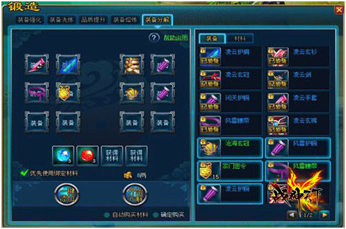 战斗场景要玩《战神天下》里的任何装备的等级都是固定不变的,改造是没有办法进行装备等级的提升的。在进行游戏的过程中,玩家通过副本任务、日常活动、功勋值兑换、碎片收集、锻天阁等方式获得更高等级的装备。