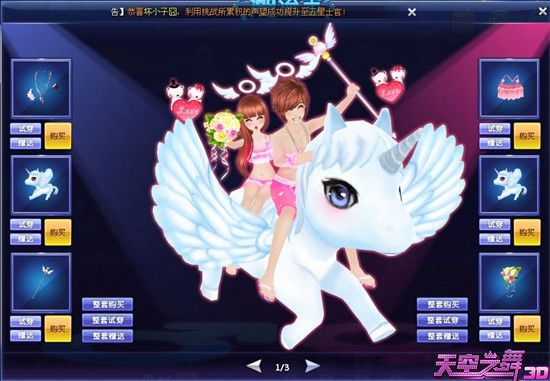 骏逸飞云坐骑骏逸飞云坐骑,拉风的造型,华丽的光效,忽闪忽闪的一对双眸,绽放出灵动的光芒。这个暑假有了它的陪伴,你一定会是最闪亮的主人!情侣们一起坐上它,乘着风,就好像通向幸福一样!想拥有这样一个稀有萌宠吗?活动时间有限,赶快来体验一下吧!