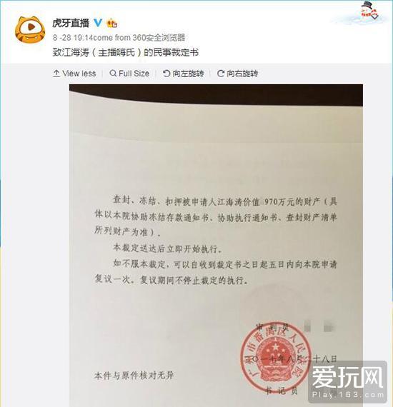 原虎牙TV一名人气《王者荣耀》主播“嗨氏”在转战斗鱼TV之后,风波不断。虎牙TV对嗨氏发起了违约诉讼,而根据最新的民事裁决书,法院将查封、冻结、扣押嗨氏上千万财产。