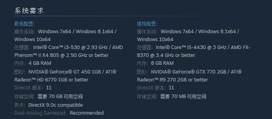 不过推荐配置这里,商店页面写成了70MB……应该是和最低配置一样的70GB。