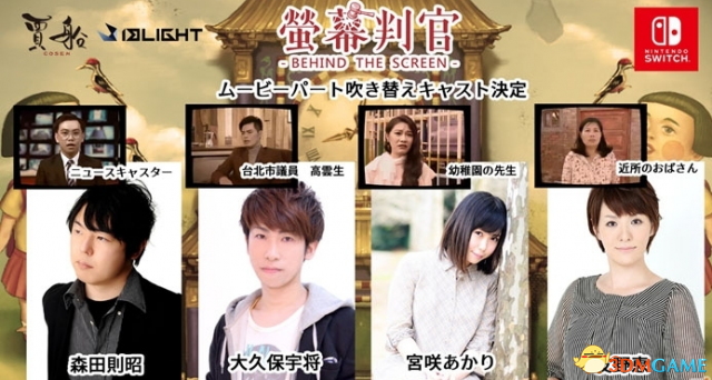 ·Switch版《荧幕判官》中登场的4位真人参演角色日语声优公开,男性新闻主播由森田则昭饰演;台北市议员高云生由大久保宇将饰演;邻居大妈由友野恵饰演、幼儿园老师则由宮咲AKARI饰演,敬请期待。