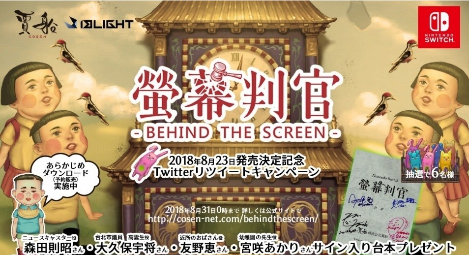 COSEN社今天宣布,由来自台湾工作室的映射社会现实问题的创意解谜游戏《荧幕判官Behind the Screen》于8月23日今天正式登陆Switch平台,这款取材于真实社会现实的创意新作备受关注,可以从侧面了解下关于台湾的二三事。