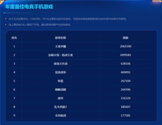 值得一提的是,“2016中国游戏风云榜”所有奖项中,“年度最佳电竞手机游戏”的投票数远远超过其他榜单,可见玩家对这一奖项的关注度之高,这无疑是在传达一个信号:能打败电竞的只有电竞,想要超越端游电竞,就请在移动电竞上下功夫吧!