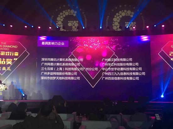 深圳市腾讯计算机系统有限公司、广州网易计算机系统有限公司、三七互娱(上海)科技有限公司广州分公司、广州多益网络股份有限公司、深圳市创梦天地科技有限公司、广州银汉科技有限公司、广州华立科技股份有限公司、中山市世宇动漫科技有限公司、广州四三九九信息科技有限公司、广州百田信息科技有限公司被评为最具影响力企业