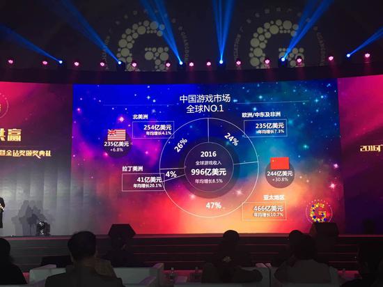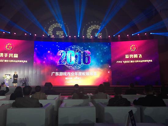 由广东省游戏产业协会主办的2016广东游戏产业年会在广州流花展贸中心举行,会上广东省游戏协会发布《广东省游戏产业年度发展报告》,报告显示,2016年中国游戏市场收入达到244亿美元,成为全球第一。广东则占中国超70%份额,全球近20%份额!大会同期还举行了金钻奖颁奖典礼。