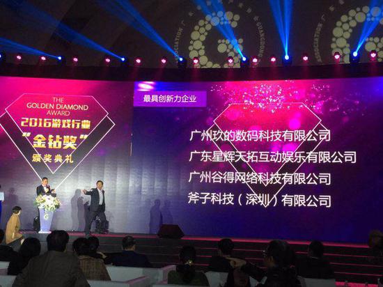 广州玖的数码科技有限公司、广东星辉天拓互动娱乐有限公司、广州谷得网络科技有限公司、斧子科技(深圳)有限公司荣为最具创新力企业。