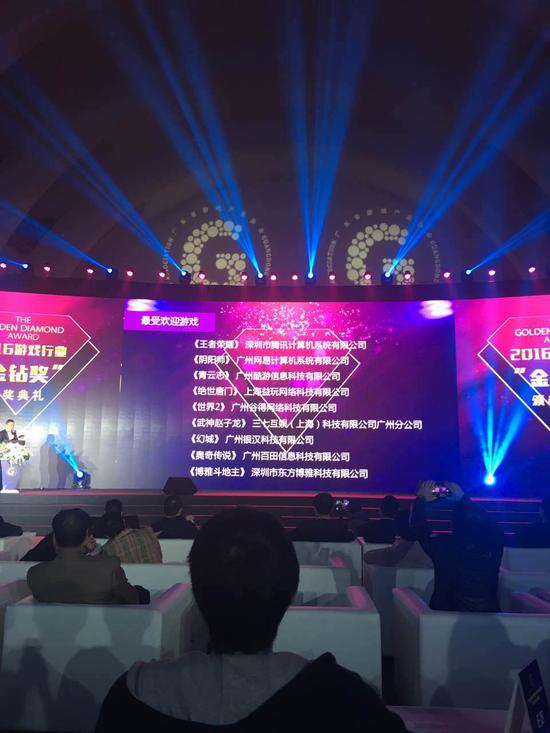 在“金钻奖”颁奖典礼上,《王者荣耀》《阴阳师》《青云志》《绝世唐门》《世界2》《武神赵子龙》《幻城》《奥奇传说》《博雅斗地主》被评为最受欢迎游戏。