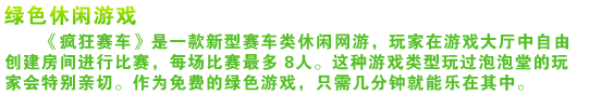 与写实的赛车游戏不同的是疯狂赛车是一款卡通风格的休闲赛车。玩家可以在比赛中随机获得各种道具,并用来争夺领先或是相互陷害。赛场道具的丰富多变使得游戏充满了惊喜和刺激。 |