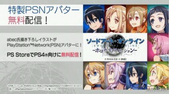 PS商店将免费配信PSN头像配合游戏宣传。从公开的画面来看,包括桐人,亚丝娜在内至少9款全新头像将可免费使用。