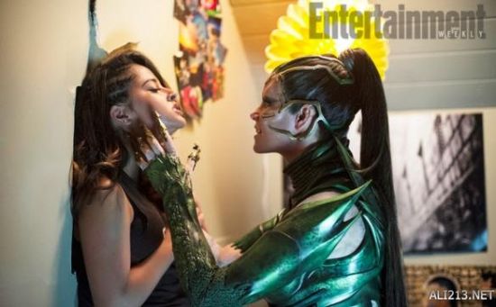 感谢娱乐周刊,让我们看到了影片中 Rita Repulsa(伊丽莎白·班克斯)和Trini(贝基)之间的战斗场面,很显然,Rita没有再缩在自己的安全区域中,而是开始了新的挑战。在和Trini的斗争中,她试图突破对手的心理防线,并将她抵在了墙上。比起以前电视剧版的剧情,本作还是有很大不同的。