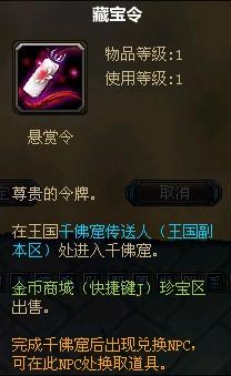 小贴士:【藏宝令】用于在藏宝洞副本中兑换高额的奖励。