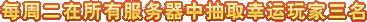 活动每周一期,抽奖时间为当周周三和周五下午6点,共3期。幸运玩家将通过现场直播抽签产生,保证公开,公正,公平。