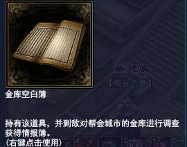 此任务≥60级才可触发,可以盗取对方帮会资金,本帮资金增加。