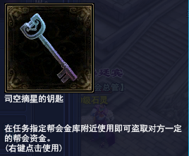领取后,任务包裹获得司空摘星的钥匙,进入目标帮会,在金库附近右键即可。