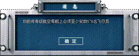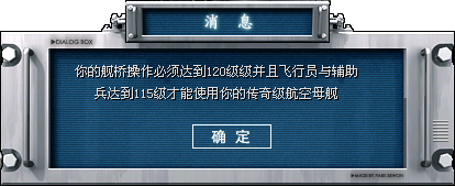 3. 传奇航空母舰(SD CV)除了需要一个120级相应的舰桥操作之外,其余的水兵也需要达到至少120级,并且,传奇航母最低需要配置5名飞行员,最高不能超过8名。如果水兵等级职业没有达到要求,将被提示如下: