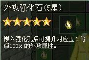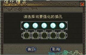 玩家放入强化石的方式与玉石相同,当强化石被拖曳至装备上时,如该装备镶嵌了玉石则弹出强化面板,玩家可以选择任意一个强化孔放入强化石。