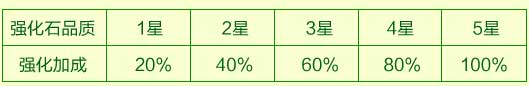 根据强化效果的不同每种强化石又有五种品质,用1-5星表示。品质越高强化的效果越好,具体数值如表: