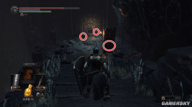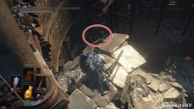 下去后有石像鬼,和一些东西捡完即可前往上方