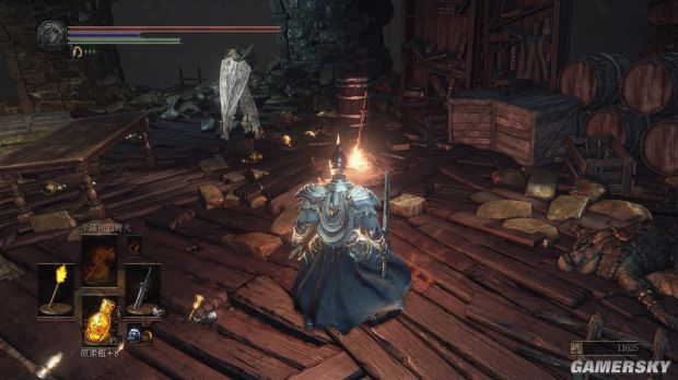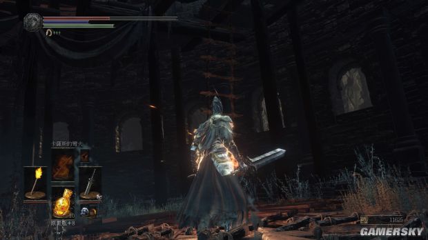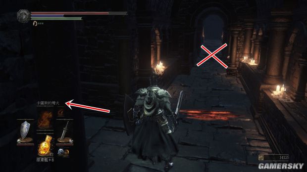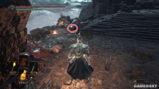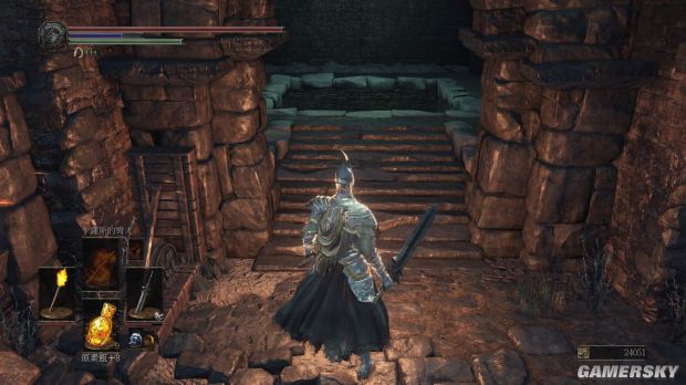 到了地面可以看到另一个梯子,上面有篝火和不死人遗骨