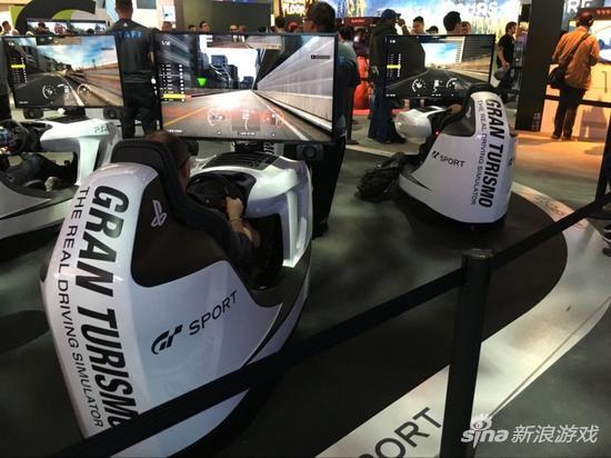 《GT SPORT》是索尼下半年的重点独占大作之一,自然不能错过一年一度的E3盛会。索尼把自家展台的很大一部分都给了《GT SPORT》,提供了共计10台试玩机,全部配备了专业的赛车座椅和方向盘。今年索尼的重点E3试玩需要用专门的官方APP进行预约,《GT SPORT》的全天试玩位基本可以在上午开展半小时之内被预约一空,可以说体验机会像VR一样紧俏。虽然索尼没让游戏在E3发布会上登台,但一点也没影响这部竞速游戏的人气。