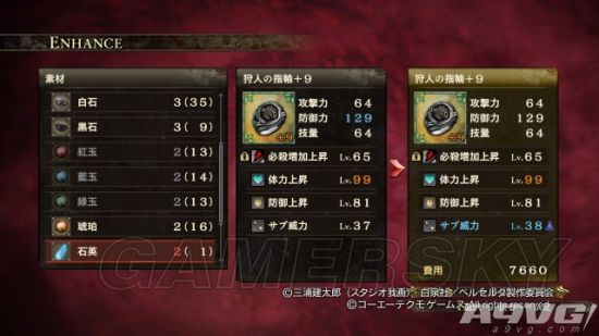 一件饰品有增加的能力值与附带技能这两种属性,增加的能力值可以增加佩戴者的力量、防御与技巧这三种能力;附带的技能涵盖的面比较广,从单纯增加力量防御这些基本属性到自动回复狂暴槽这些技能都有,满级为LV99。饰品可用石头素材进行强化,能增加石头对应的技能与属性;合成功能则是以一个饰品作为强化的对象,以其他最多四个饰品为素材进行强化,可以增加基础饰品所增加的能力值与技能,在剧情推进到一定程度之后还能选择所要继承的技能。