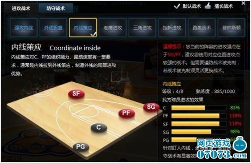 平平淡淡的战术怎能体现球场上您至高无上的高明?《范特西篮球经理》战术系统战术还可以升级,您只要参加各种比赛就可以让您的战术级别不断飙升,您还可以设置您的专属擅长战术哦!