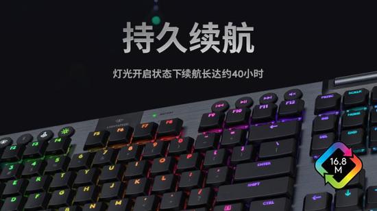 G913 TKL无线RGB机械游戏键盘也依旧延续了LIGHTSYNC智能炫光科技,RGB 灯效全开,可依据不同游戏场景即时反馈氛围光效。约1680万颜色自定义,为每位用户奉上一场视觉盛宴。优秀的电池续航也可让玩家享受最长40小时不间断的光影激战,而在关闭 RGB 情况下,G913 TKL则将拥有150天的续航保障(以每天使用时长8小时计算,依用户及计算条件而异)。