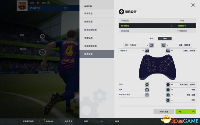 游戏默认的防守模式为自动防守,玩家可以在操作设置菜单中对“防守倾向”这一项进行设置。在“自动防守”和“策略防守”之间进行切换,选择自己想要使用的防守模式。