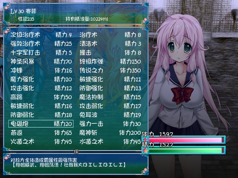 游戏是A·RPG的形式,主角成长参数要手动加属性点,且成长效果不高,即便在简单难度,堆了半天HP也就多挨两下,加了很久力量也就少砍一刀,所以更要求玩家的ACT水平,高难度下更是硬核无比,这在倾向于低能化设计的黄油里非常难得。