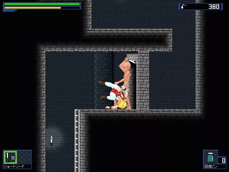 大部分的动作类黄油,表达合体内容是通过被敌人击倒来实现,这种设计有个很致命的缺陷,就是让玩家为了收集合体演出而花样求死,严重影响游戏节奏感——显然,这与动作游戏的乐趣相悖。本游戏显然也考虑了这一点,通篇只有少部分头顶冒桃心的发情敌人,且在女主处于“爆衣”条件下才会扑上来合体,如果玩家乐意,可以完美回避。游戏主要的合体演出,是通过击杀BOSS后获得特殊道具,回城后找指定角色解锁观赏动画,进一步提高了游戏良好的节奏感。