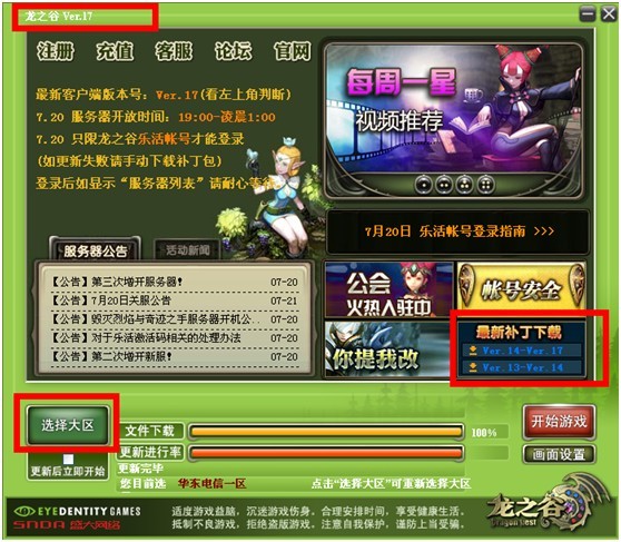 答:7月22日开放测试的最新版本是Ver.17版本,请在双击桌面客户端图标后,观察登录界面的左上角的版本号,显示“龙之谷Ver.17”则表示该客户端为最新客户端,如果您的客户端不是最新版本,建议您尽早进行自动更新。