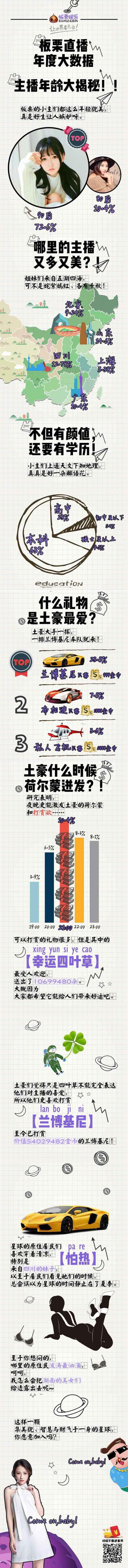 直播平台板栗娱乐近日公布了2016年度大数据。作为直播平台最吸睛的主角,主播的一举一动颇受网友的关注。在地域方面,四川省的妹子占据了人数榜首。自古蜀都出美女,加上川妹子爽朗外向的性格,担任主播真是再合适不过。超乎很多人想象的是,主播行业也是学霸的聚集区。超过73%的人拥有本科以上学历,其中接近10%的主播获得了硕士及以上的学位,可见高颜值、高学历正在成为主播行业的大趋势。