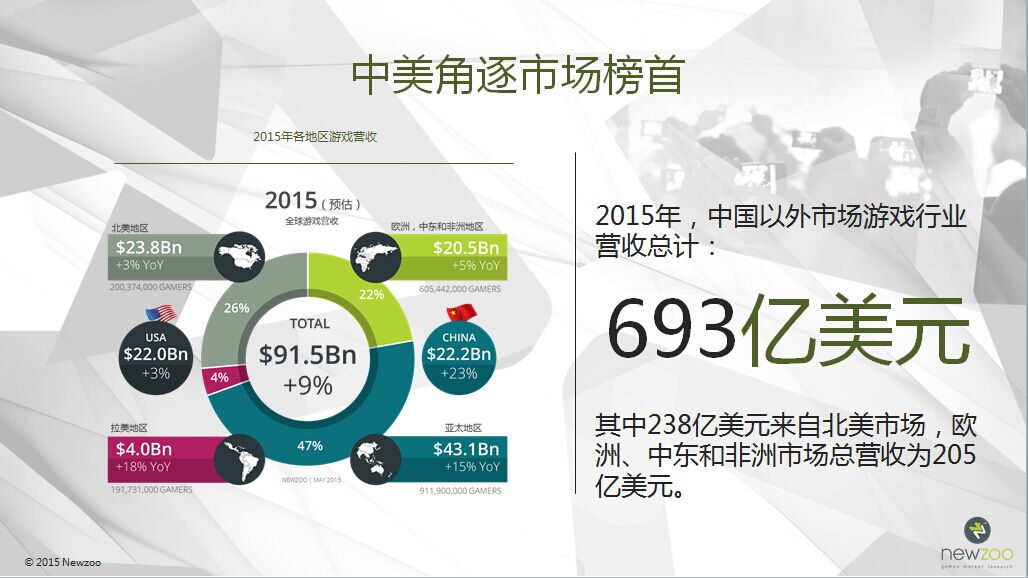 Newzoo是一家富有创新精神的国际市场研究公司,主要关注游戏行业。我们为客户提供了客户调研、交易数据以及财务分析等多种多样的产品及服务,范围涵盖全世界所有地区、游戏平台和商业模式。我们希望能够始终站在全球和本土趋势前沿,为客户提供广阔视野下的切实数据分析。NewZoo是一家致力于游戏业务全球市场研究及预测分析的公司,NewZoo为其客户提供基于全球、全端和全商业模型的市场趋势分析、金融分析、收入预测、消费者洞察分析、数据建模解决方案和预测分析服务。NewZoo服务于大部分全球游戏收入Top25的上市公司,以及许多独立游戏开发者和全球领先的硬件和媒体公司。NewZoo的总部位于荷兰的阿姆斯特丹,并在上海和旧金山设有国际分公司。